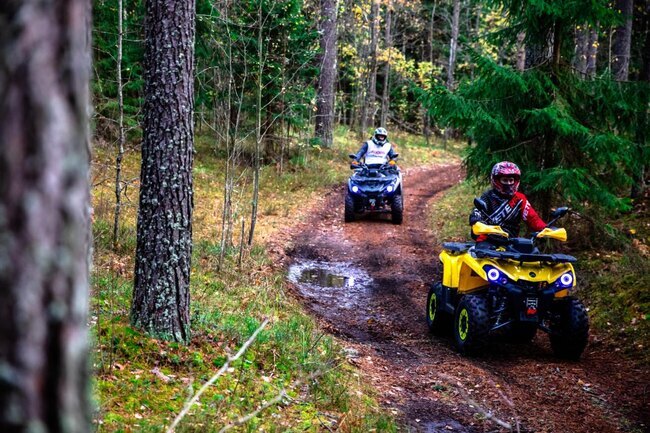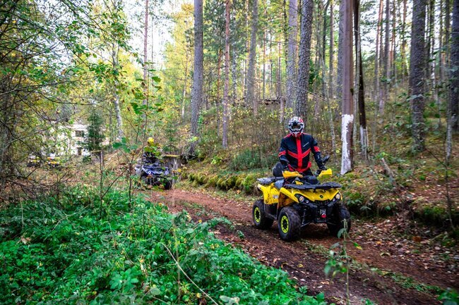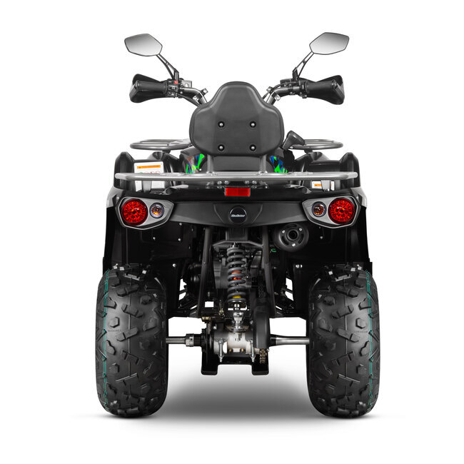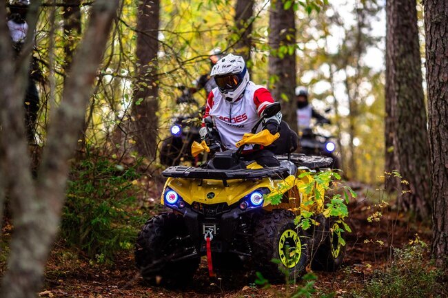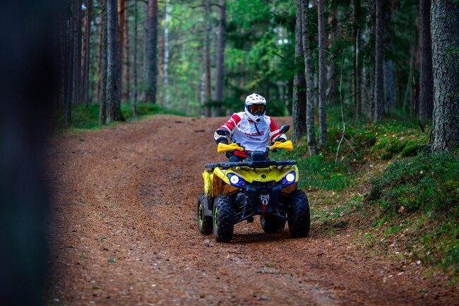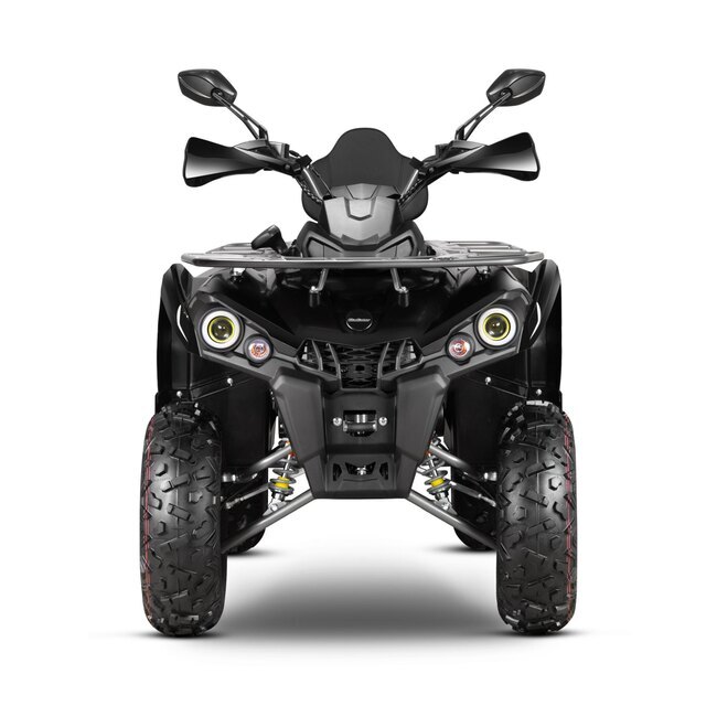 Комфорт и управляемость: Адаптивная подвеска с ходом 160 мм обеспечивает плавность хода даже на сложных трассах, включая узкие лесные тропы и каменистые участки. Вес квадроцикла всего 197 кг, что существенно упрощает управление и прохождение труднопроходимых участков.