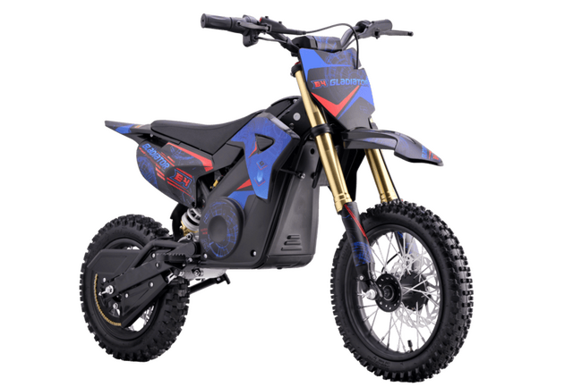 Электрический питбайк Gladiator E4 blue (36V1000W, 12/10) — электрический питбайк мощностью 1000 Вт для подростков.