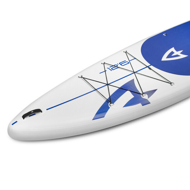 Надувная доска для серфинга Aqua Arrow 12.6 Navy — это универсальная надувная доска для гребли, созданная для тех, кто ценит скорость, прямолинейность хода и исключительную стабильность. Ее удлиненный форм-фактор делает ее идеальным выбором для длительных прогулок, фитнес-тренировок, турингов и гребли в одиночку или с небольшим грузом. Благодаря технологии тканевого плетения и жесткости до 12-15 PSI, вы получаете надежный контроль и ощущение серфовой доски.