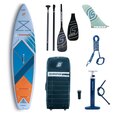 SUP укомплектован удобной и стильной сумкой на колесиках, разборным карбоновым веслом, отличным лишем, итальянским насосом двойного действия, оснащенным манометром и ремкомплектом.