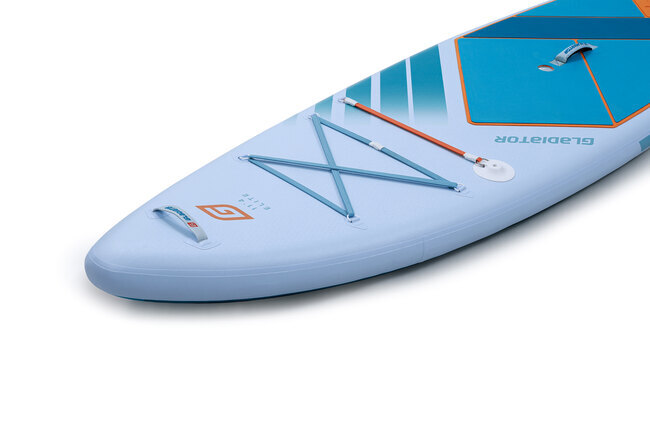 SUP Gladiator Elite 11'4 сделан из двухслойного ПВХ, соединенного по методу ламинации, на прочной текстильной основе машинной вязки плотностью 1000 den. Особая структура плетения основы позволила нам одновременно снизить вес и добиться потрясающей жесткости этой доски. Модель дополнительно усилена суперпрочным двойным кантом, изготовленным по инновационной технологии Xstrong edge. Благодаря особой конструкции и методу крепления он дает эффект «литой» доски. Удобство и отличную управляемость этого SUP оценят по достоинству опытные райдеры.