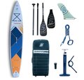 В комплект входит сумка на колесиках для удобной транспортировки, разборное карбоновое весло, комфортное лиш для длительных путешествий, итальянский насос с манометром и ремкомплект. Все это обеспечивает высший уровень комфорта во время ваших водных приключений.